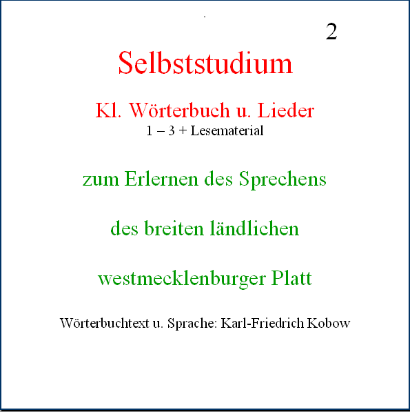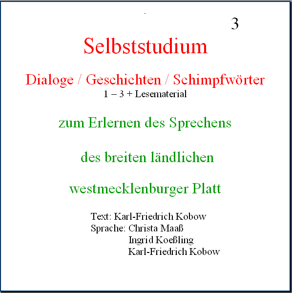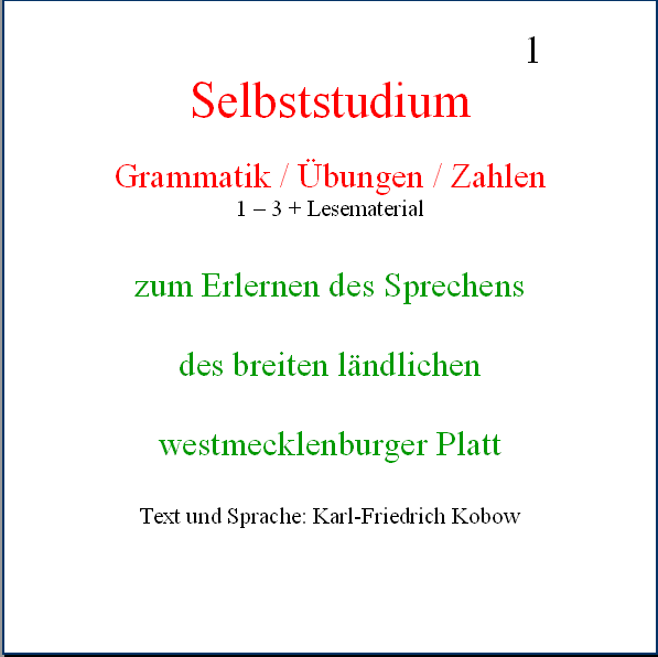 Material, um im Selbststudium das Sprechen des breiten ländlichen westmecklenburger Platt zu erlernen